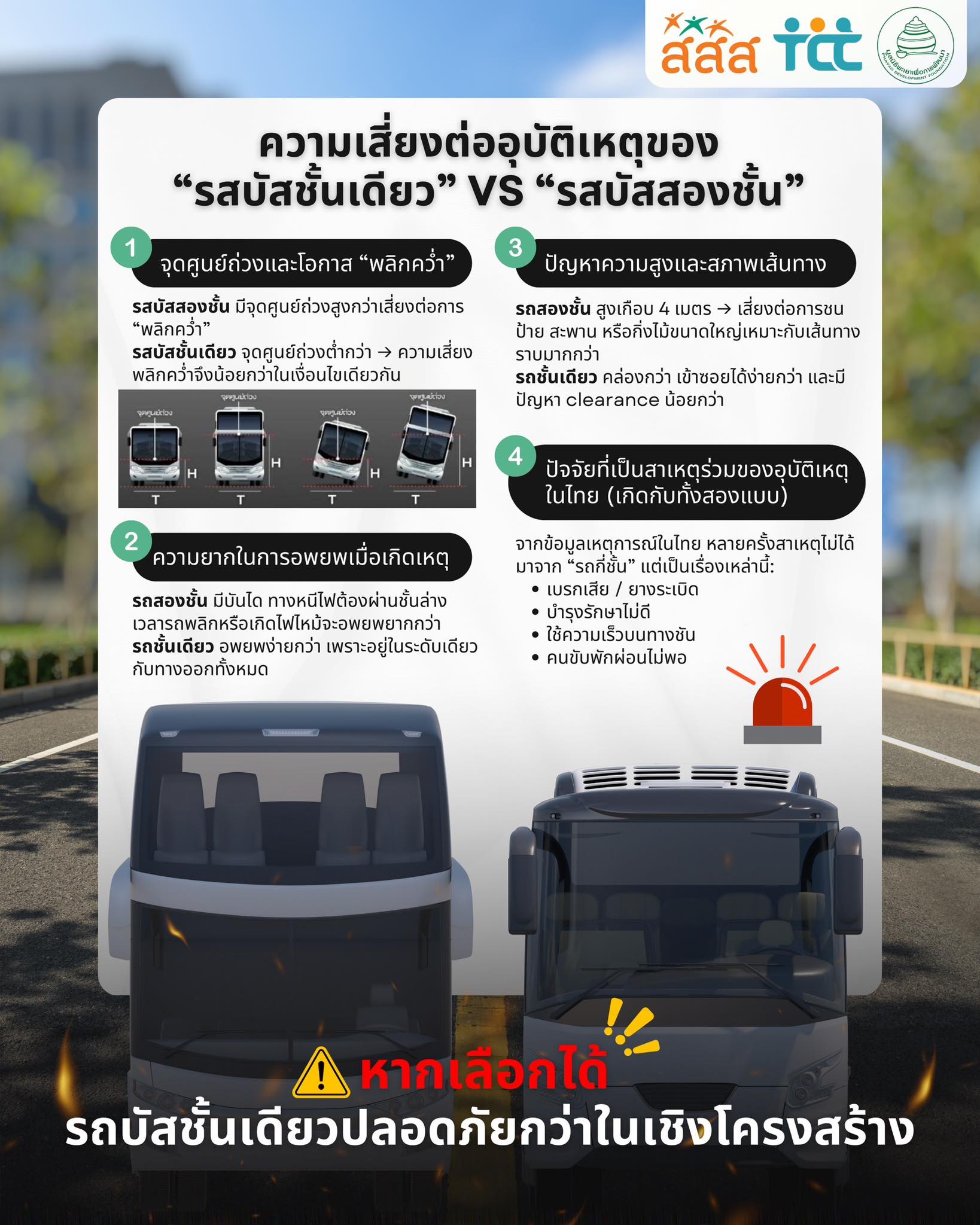 - ความเสี่ยงต่ออุบัติเหตุของ “รสบัสชั้นเดียว” vs “รสบัสสองชั้น